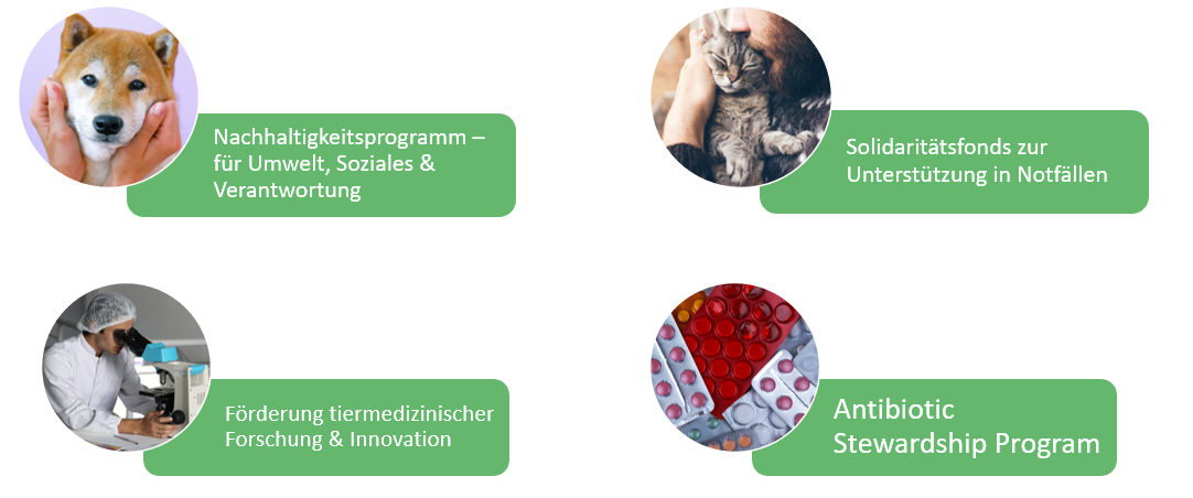 Der Bericht besteht aus drei Abschnitten. Der Abschnitt „Menschen" des Berichts befasst sich damit, wie wir unsere Mitarbeiter*innen und ihre berufliche Entwicklung unterstützen können. Im Abschnitt „Unser Planet" wird beschrieben, wie wir unsere Gruppe auf eine klimaneutrale Ökobilanz umstellen, was wir bereits tun und wo wir hinwollen. Der Abschnitt „Unsere Haustiere“ zeigt, wie wir die Tiermedizinische Versorgung noch besser machen.