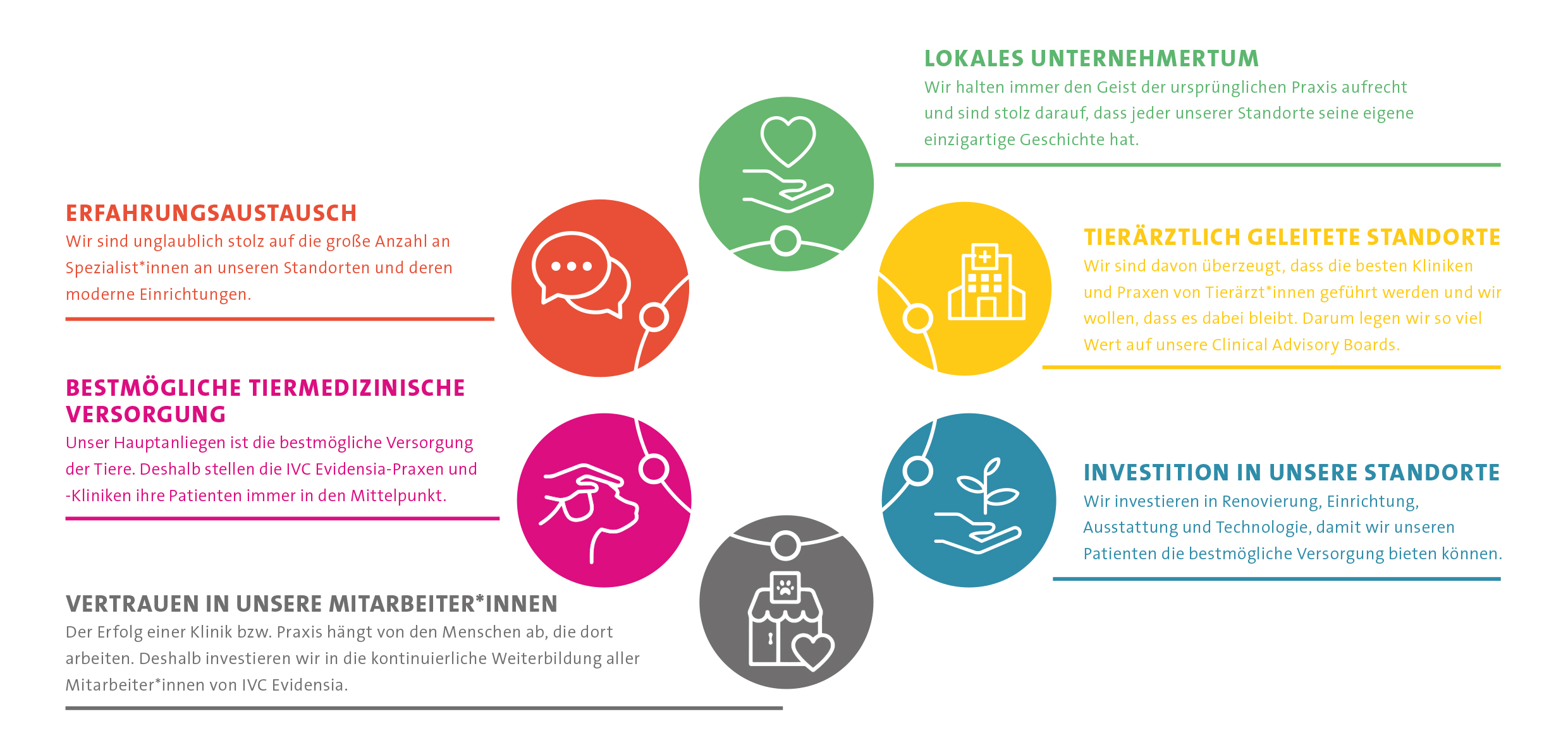 Dank der Zusammenarbeit in einer großen, paneuropäischen Gruppe können Synergien genutzt und die gemeinsamen, ambitionierten Ziele erreicht werden. Tierärzte und Spezialisten aus unterschiedlichen Fachgebieten arbeiten interdisziplinär zusammen. Das fördert einen raschen und effektiven Erfahrungsaustausch und hilft, die Qualität unserer tiermedizinischen Leistungen hoch zu halten und stetig weiter zu verbessern. Außerdem bietet sich dadurch die Möglichkeit, gemeinsam zu wachsen, neue Erfahrungen zu sammeln und sich weiterzuentwickeln.